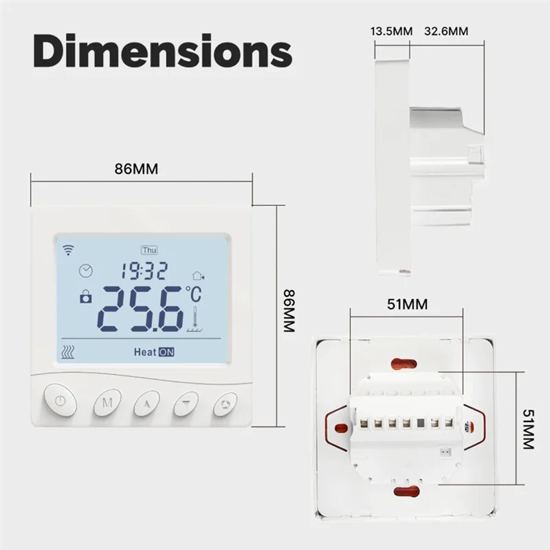 3. Timing function: Set weekly programming according to user needs and habits, automatically adjust the room temperature at a fixed time, and provide a personalized temperature control experience.