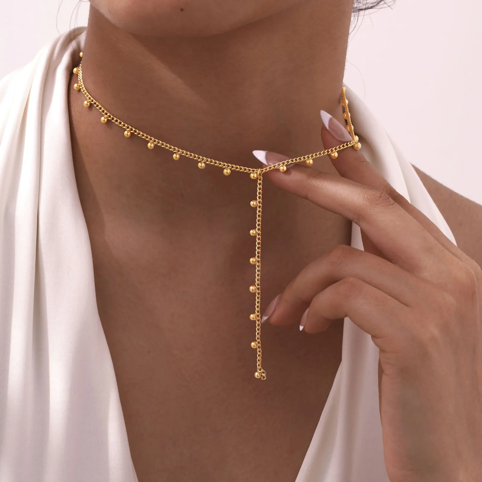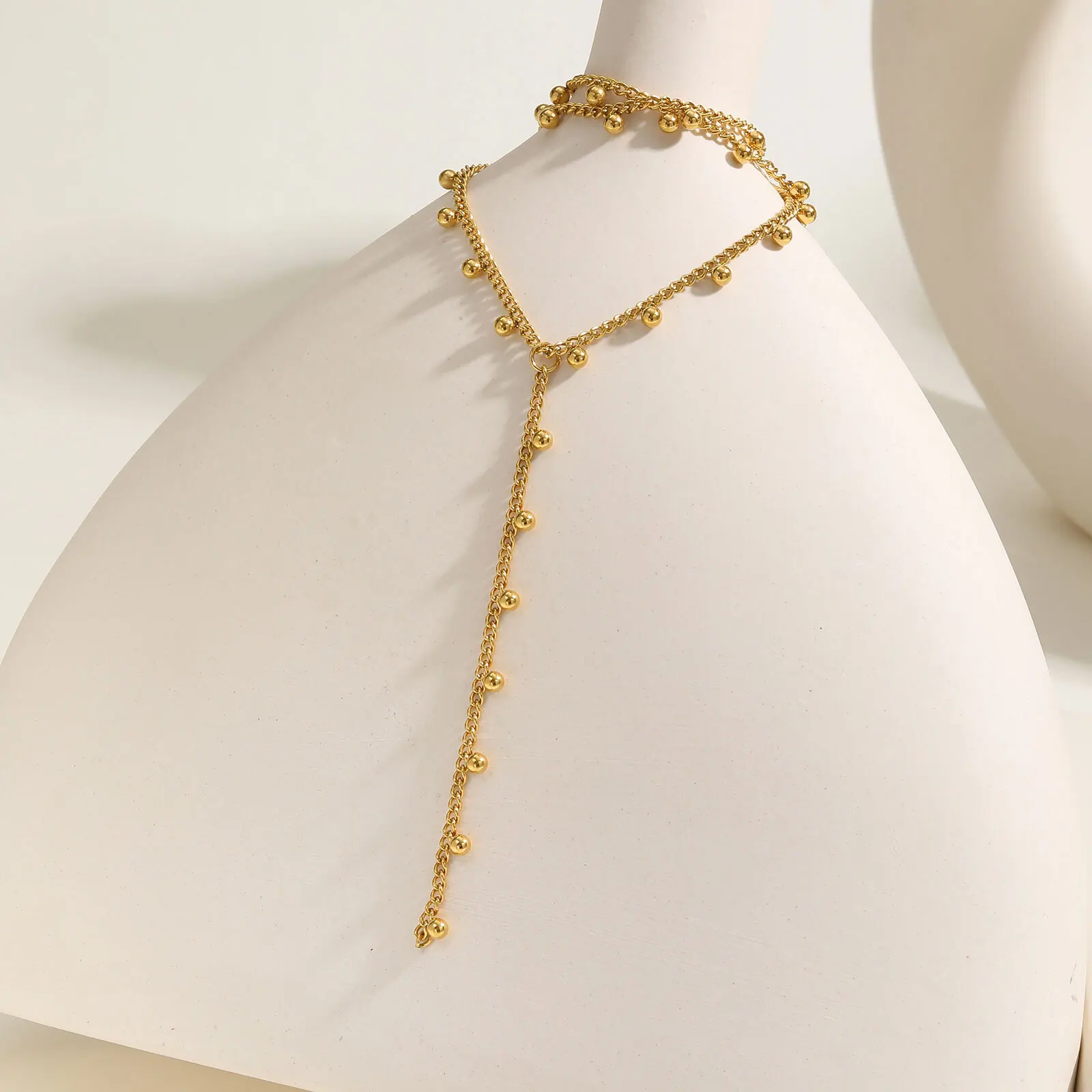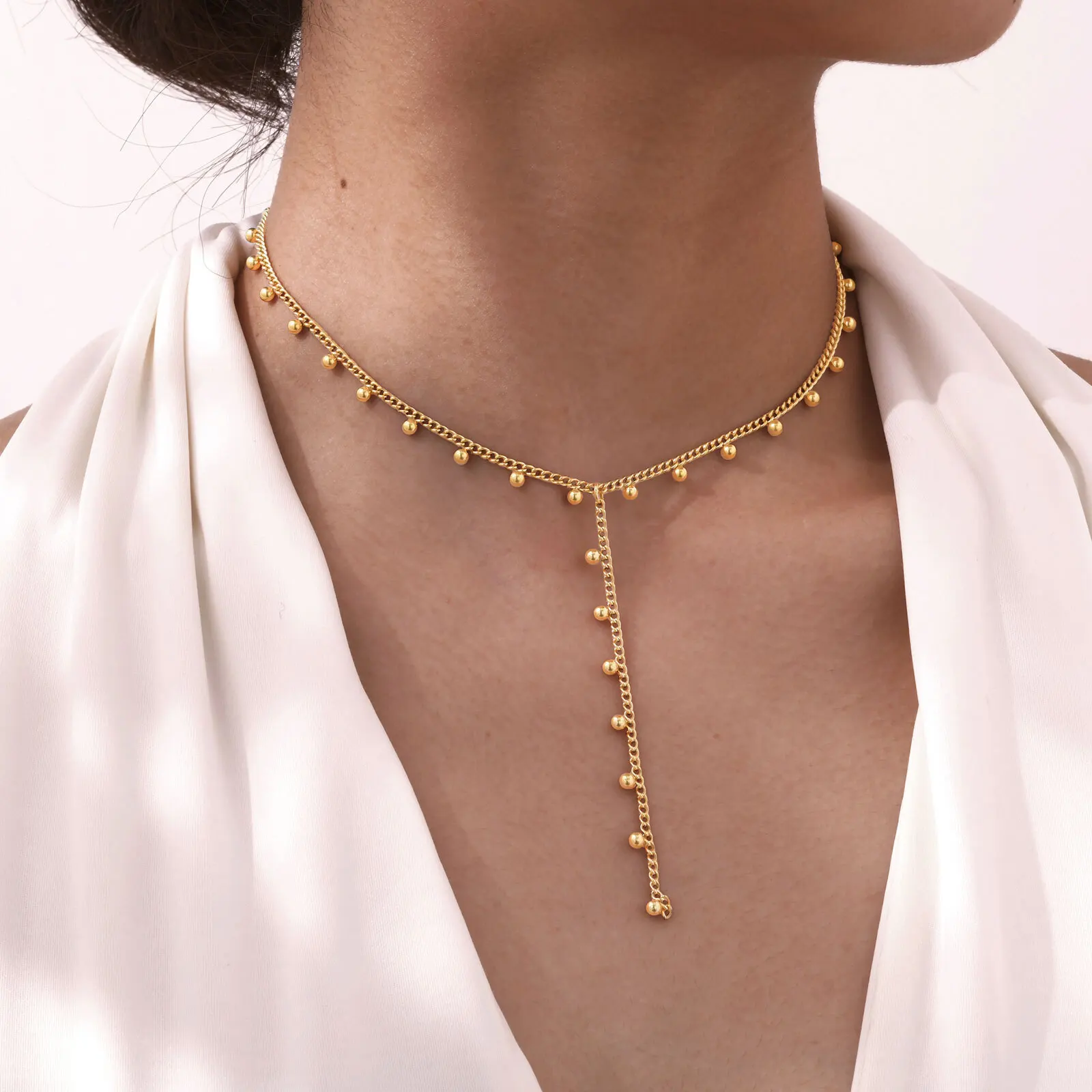 Prjewel Simple Beads Y-Shaped Tassel Necklace For Women Gold Color Frame Chain Necklaces Fashion Stainless Steel Jewelry New