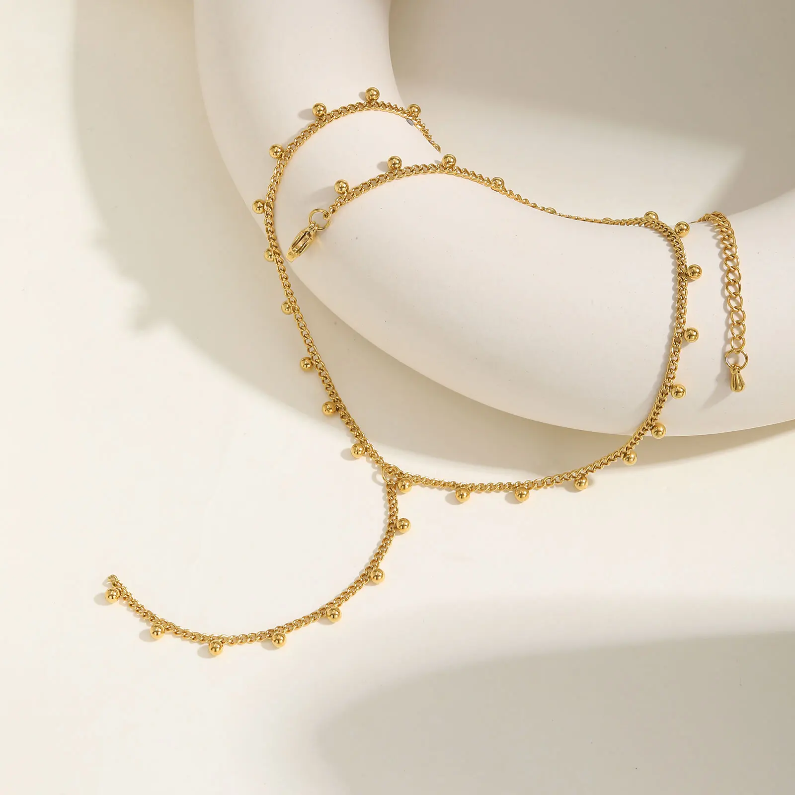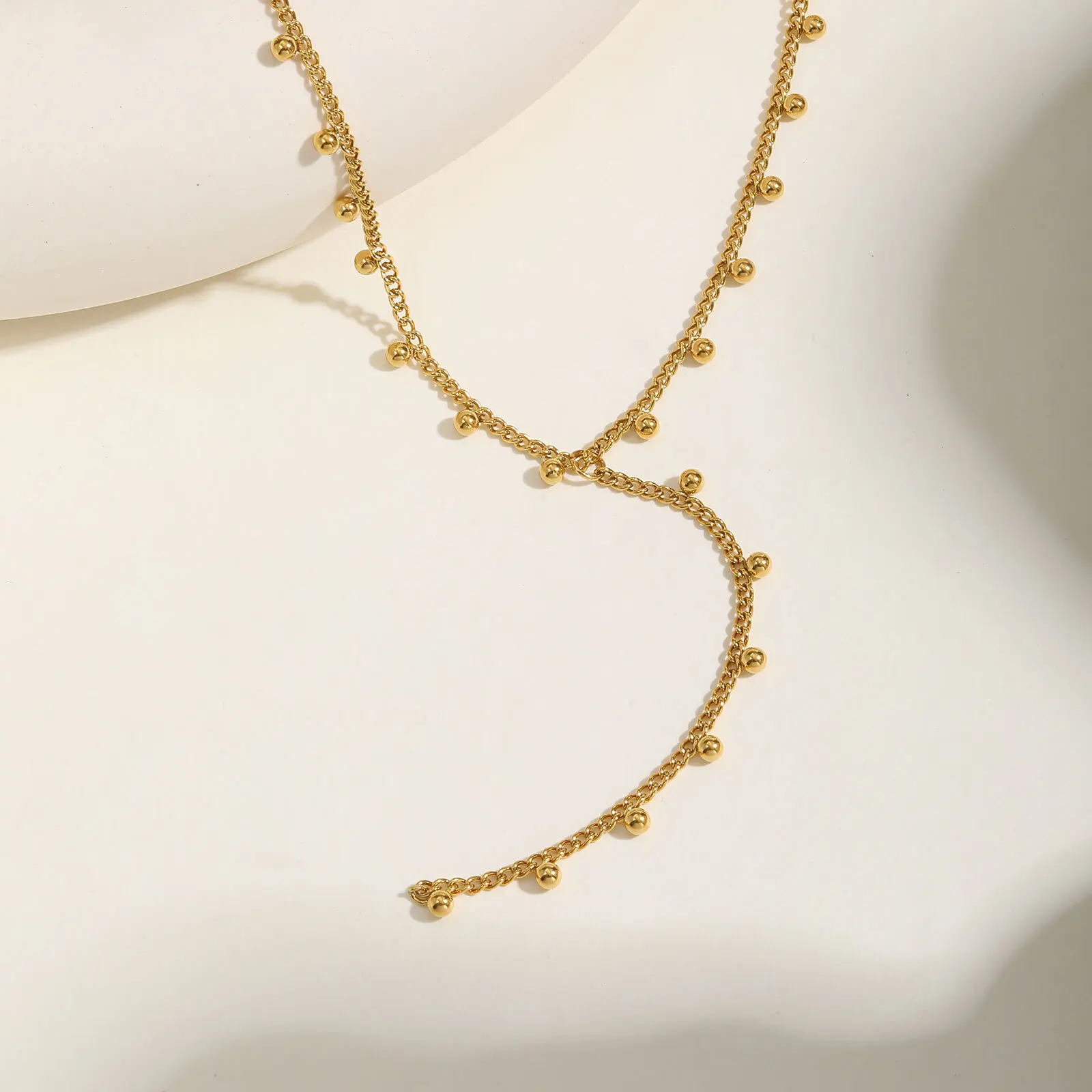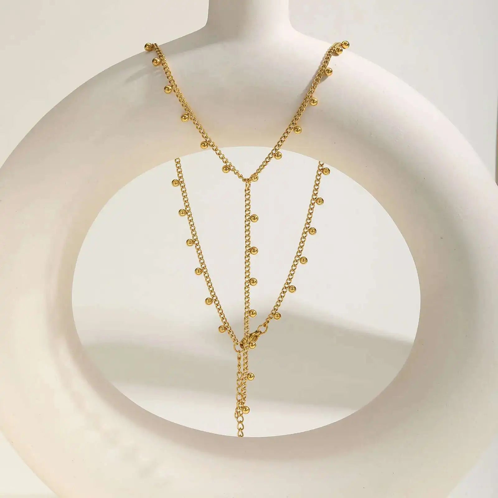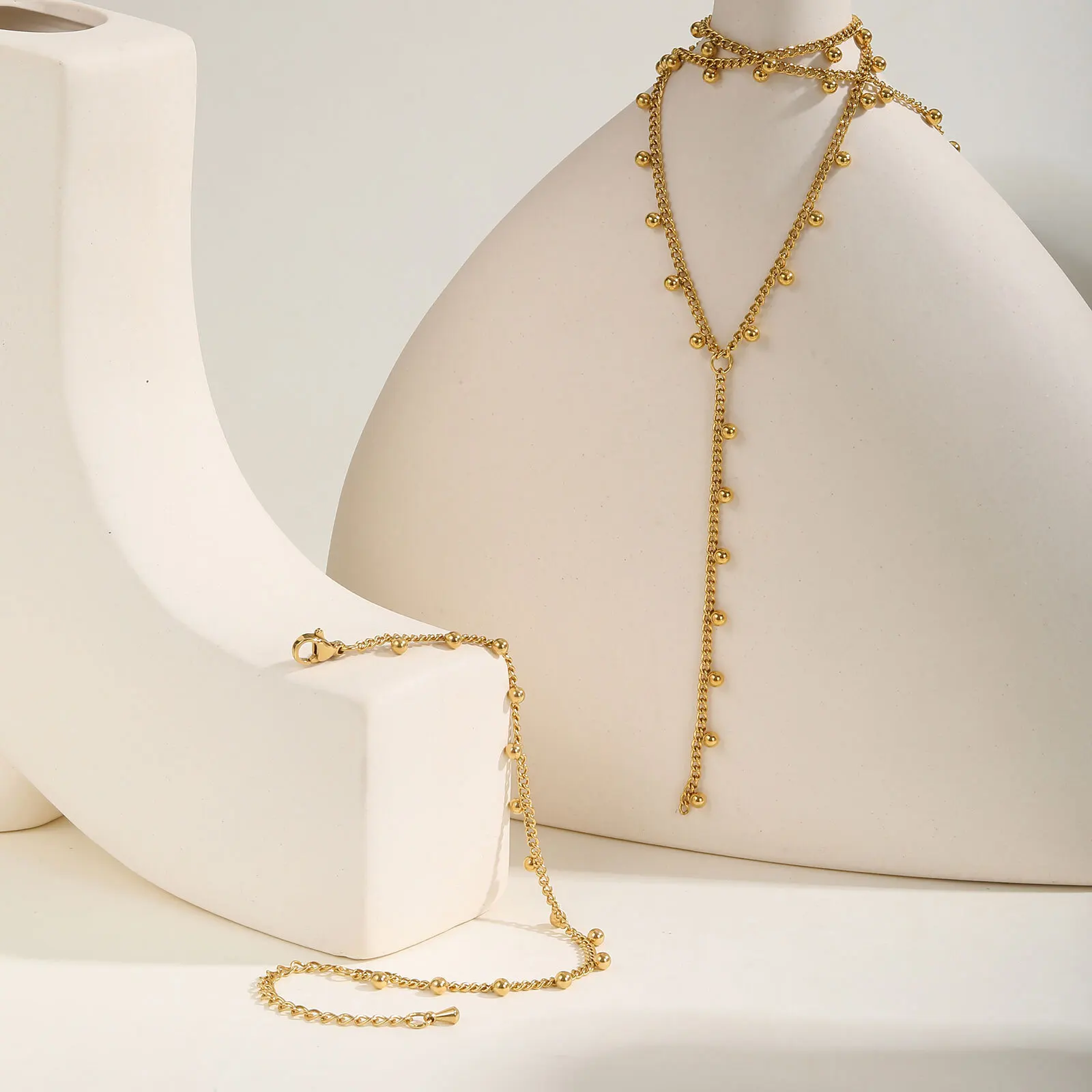 Prjewel Simple Beads Y-Shaped Tassel Necklace For Women Gold Color Frame Chain Necklaces Fashion Stainless Steel Jewelry New