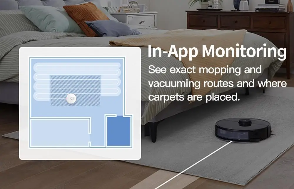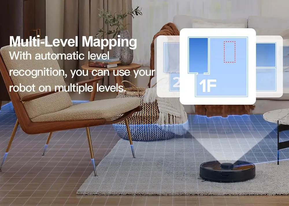 Pinpoint accurate LiDAR navigation creates detailed maps of your home and identifies your rooms across up to four levels.