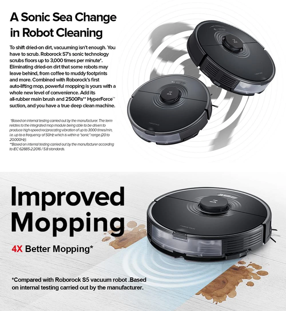 Equipped with Roborock’s HyperForce suction system, S7 uses 2500 Pa2 of suction to capture fine dust on hard floors, hair from carpets, and everything in between.