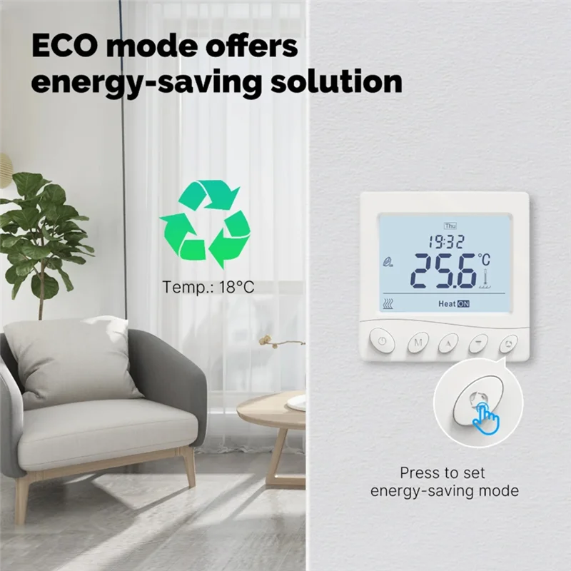 4. Energy saving and environmental protection: Automatically adjust the operation of the heating system according to the indoor temperature to avoid energy waste and achieve energy saving and environmental protection.
